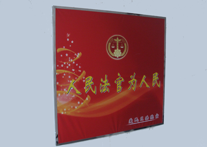 这是该院办公楼道内的弘扬法院工作主题的宣传板。