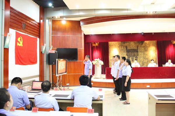 首先,爱民区法院党总支组织新党员进行宣誓。伴随奏响的国际歌声,新党员面对党旗庄严宣誓,许下自己庄重的诺言。随后,预备党员代表及积极分子代表分别上台发言表决心。通过此项仪式,也是对新党员进行的一次党的再教育。