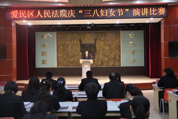 在国际劳动妇女节105周年来临之际,为弘扬社会主义核心价值观,增强全院干警责任感、使命感,树立崇高理想信念,牡丹江市爱民区人民法院举办了“扬拼搏精神、展巾帼风采”主题演讲比赛。