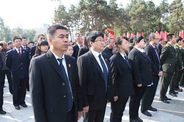 早秋时节,天朗气清,牡丹江市爱民区人民法院干警整装齐发,前往北山烈士纪念碑,参加由牡丹江市委、市政府组织的烈士纪念日公祭仪式。