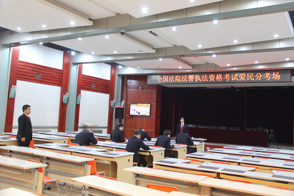 为深化执法规范化建设,全面提高司法警察依法履职的能力,按照最高人民法院《关于组织全国法院司法警察执法资格等级考试(初试)普测工作的通知》的部署和相关要求,牡丹江市爱民区人民法院组织法警参加全国法院首次司法警察执法资格考试。