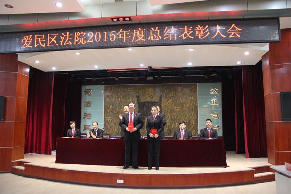 26日下午,牡丹江市爱民区人民法院召开了2015年度总结表彰大会,会议对先进集体和先进个人进行了表彰。党组书记、院长卢俊成同志对2015年度法院工作进行了全面总结,并对2016年工作作出了部署。
