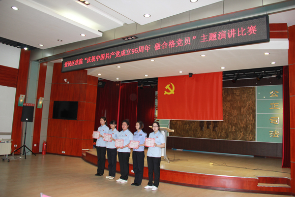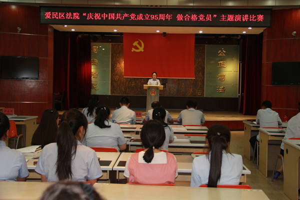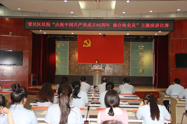 为庆祝中国共产党成立95周年,牡丹江市爱民区人民法院组织全体党员干警开展了“庆祝中国共产党成立95周年 做合格党员”主题演讲比赛。