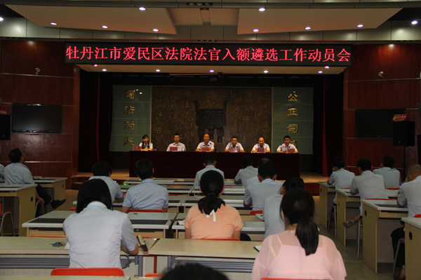 8月18日下午,牡丹江市爱民区人民法院召开了法官入额遴选工作动员会,会议宣读了《全省法院法官入额遴选工作实施方案》、《黑龙江省法官入额遴选办法(试行)》,按照相关规定和程序,结合法院实际情况,对法官入额遴选工作进行了全面部署。