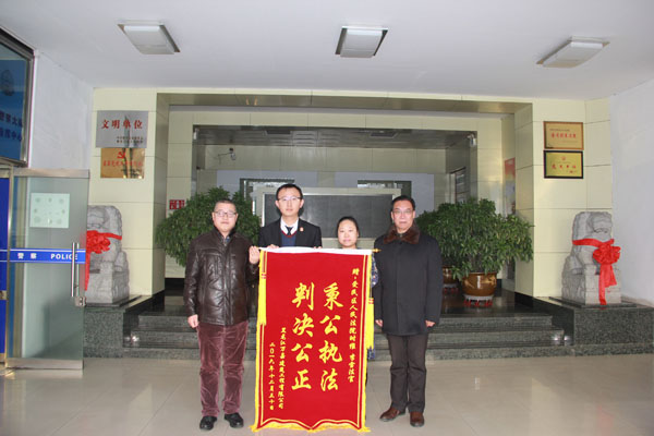 该建筑公司对爱民法院法官服务人民、公正执法的爱民之心十分赞赏,负责人高某三九天冒着寒风送来锦旗,以表感谢之情。