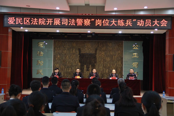 为进一步提升爱民区法院司法警务工作水平和实战能力,全面加强司法警察队伍建设,按照《全市法院深入开展司法警察岗位大练兵活动方案》要求,爱民区法院召开司法警察岗位大练兵动员大会。