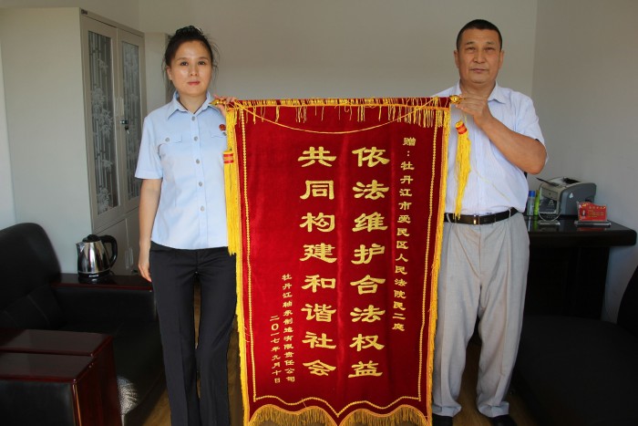 刘先生是牡丹江轴承机械制造有限责任公司办公室负责人,他说,这三十年来,牡丹江市爱民区人民法院民二庭所有法官兢兢业业地致力于司法事业,努力让人民群众在每一个司法案件中都感受到公平正义,用实际行动践行着“司法为民、公正司法”的理念,多次冒着恶劣的天气坚持送达,办案质量高有效率、调解效果特别好,在合同纠纷案件中依法维护了企业的合法权益,为企业挽回损失二百余万元,打通了服务群众的“最后一公里”。