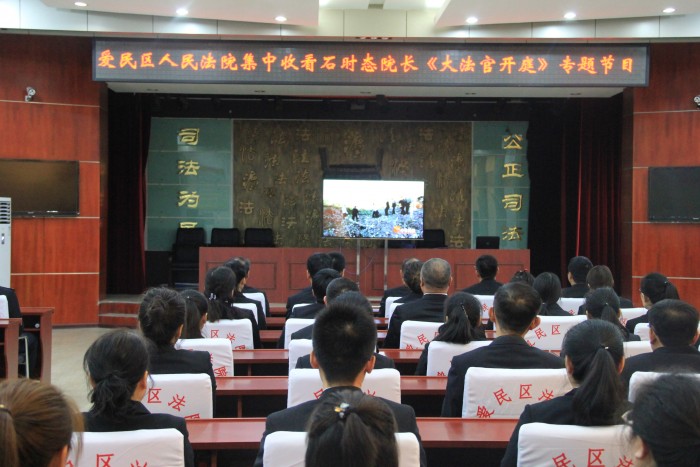 12月5日12时35分,牡丹江市爱民区人民法院组织全院干警收听收看了由最高人民法院和央视一套《今日说法》联合推出的国家宪法日特别节目——大法官开庭。