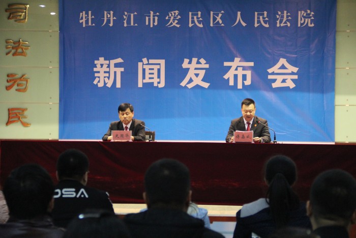 3月23日下午,牡丹江市爱民区人民法院召开新闻发布会,向社会通报2017年着力解决“执行难”相关工作开展情况。黑龙江法制报、牡丹江法制等多家新闻媒体单位记者应邀出席了发布会。