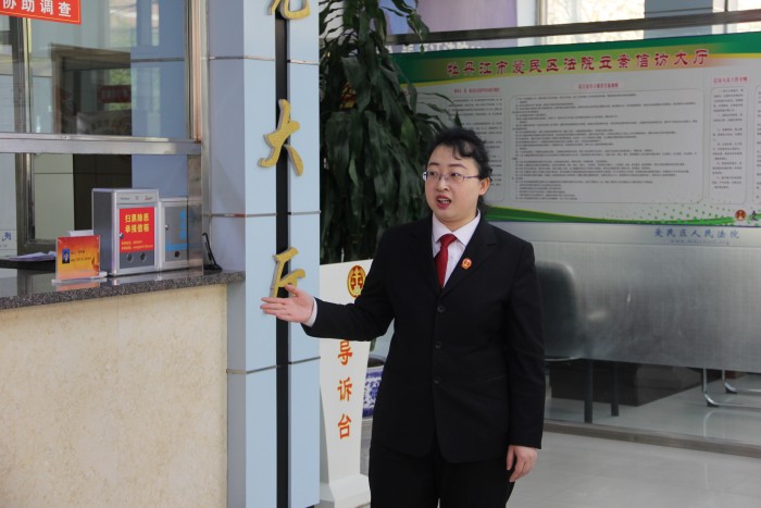 活动现场,牡丹江医学院附属红旗医院法规科副科长杨鹤带领部分医生代表走进爱民区法院,在法院工作人员的引导下,先后参观了法院诉讼服务中心、司法警察大队警务指挥中心、科技法庭、执行警务局、执行指挥中心等办公场所。
