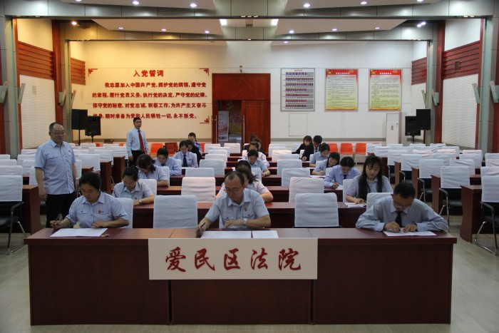 爱民区法院党组书记、院长李刚代表院党组对深化作风整顿优化营商环境、解决执行难工作、信访工作、诉讼服务窗口整顿、案件质效等工作问题作了专题汇报。