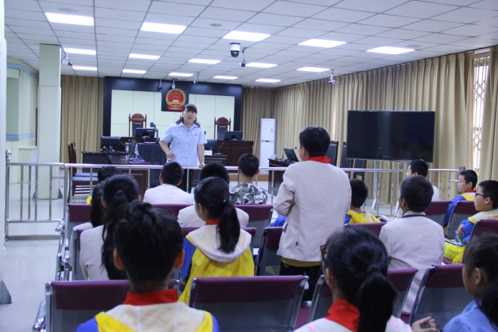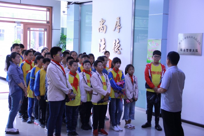 活动现场,新华小学六年三班班主任李林老师的带领学生来到爱民区法院,在法院工作人员的引导下,先后参观了法院的司法警察大队警务指挥中心、执行警务局、科技法庭、文化长廊等场所。