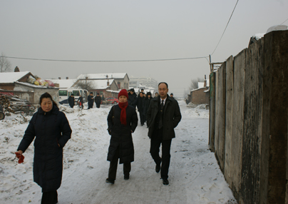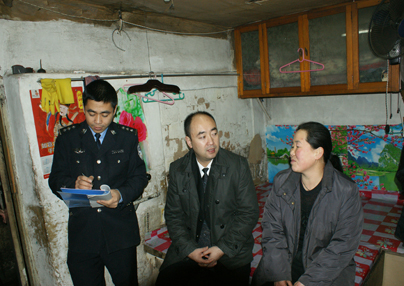 1月21日,在党组书记、院长王菲同志的带领下,爱民区法院班子成员和科级以上领导干部,带着新春的祝福来到了帮扶对象家中,详细了解挂钩的14户贫困帮扶对象家庭经济收入和就业等方面的情况,并给他们送去了春节生活用品。在帮扶对象陈彩君家,当王菲同志了解到其爱人已经去世,一个孩子还在上学,全家的生活只靠她打零工维持的时候,当即表示今后要加大帮扶力度,解决生活中遇到的实际困难,并鼓励她自主创业,早日脱贫致富。