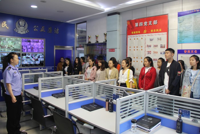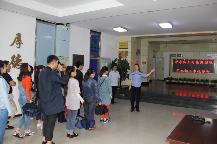 在爱民区法院讲解员的引导下,学生们先后参观了法院的诉讼服务中心、司法警察大队警务指挥中心、审判法庭、文化长廊等场所。