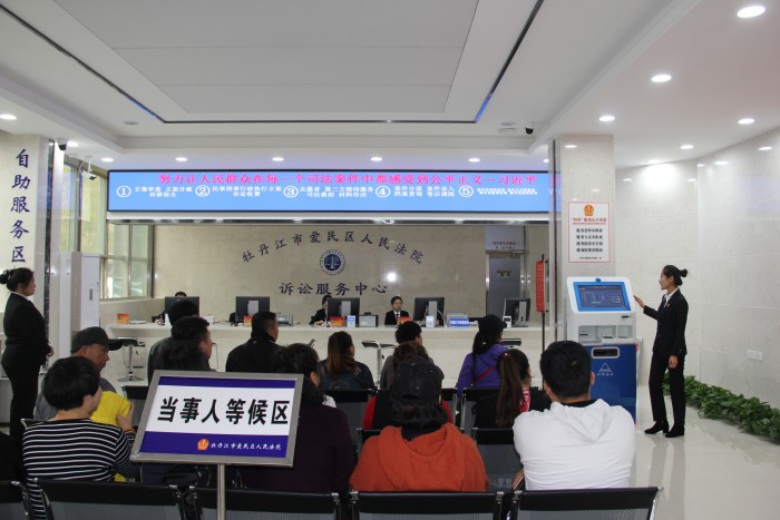 在爱民区法院讲解员的带领下,拥军社区居民先后参观了法院的诉讼服务中心、司法警察大队警务指挥中心、科技法庭、执行指挥中心、法院荣誉室、文化长廊等场所,了解法院基础设施建设和司法便民服务。