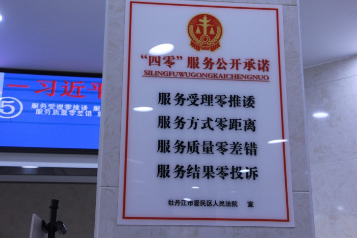 严格落实“四零” 服务公开承诺,服务受理零推诿、服务方式零距离、服务质量零差错、服务结果零投诉,窗口工作人员时刻谨记“四零”服务承诺和司法为民的服务宗旨,从导诉、法律咨询、立案审查到诉讼费用收取,窗口工作人员以饱满的工作热情和细致周到的工作方式为每一位前来诉讼的群众提供全方位的司法便民服务。爱民区法院以开放、动态、透明、便民的窗口服务机制,文明、和谐、有序的窗口服务环境和公开、便民、高效的诉讼服务得到了群众的一致好评与称赞,前来诉讼的群众高高举起手中的锦旗,递到窗口工作人员的手中,千言成语汇成一句话“感谢你们的辛勤付出,立案快,效率高,服务态度特别好!”
