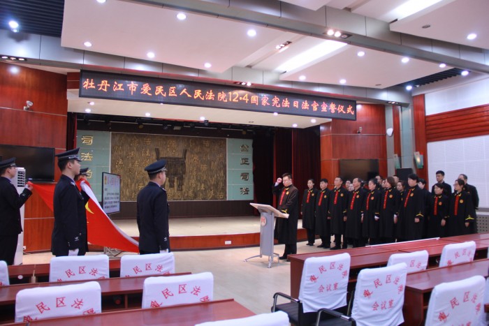 12月4日,牡丹江市爱民区人民法院组织全体员额法官开展了“12·4”国家宪法日法官宣誓活动。