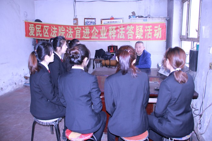 4月28日下午,爱民区法院民二庭、审监庭青年法官走进牡市兴平机械铸造厂开展了“五四”青年节法官进企业释法答疑活动。