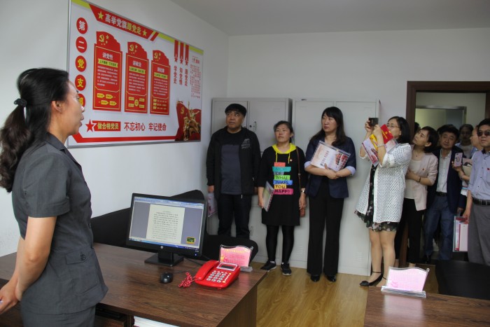 在讲解员的引导下,党务工作者先后参观了法院的四个党支部、法院廉政文化墙、文化长廊和党员学习室。