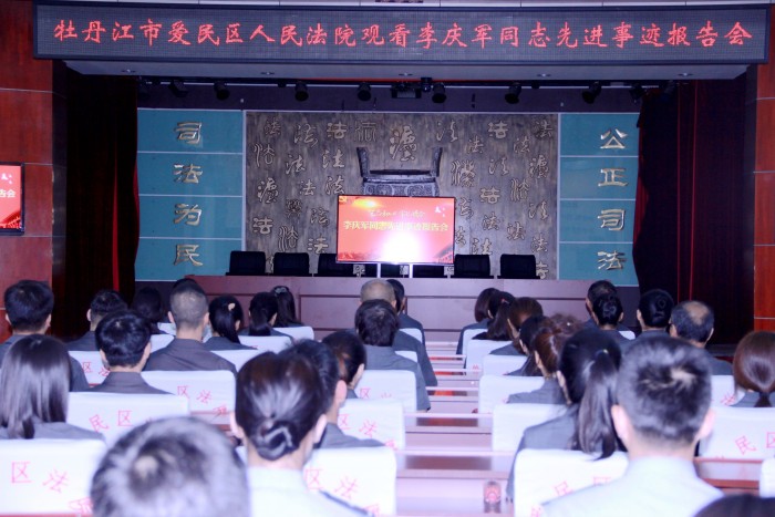 9月3日上午,牡丹江市爱民区人民法院组织干警收看了李庆军同志先进事迹报告会,集中学习了李庆军同志“把方便留给别人,把困难留给自己”的奉献精神及秉公办案、忠诚爱民的法治观念和服务意识。