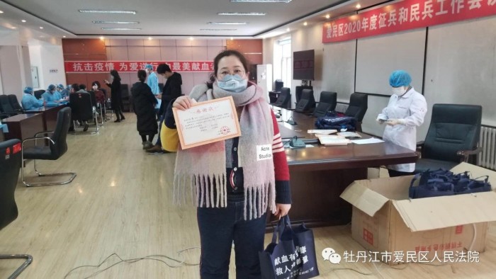 2月17日上午,爱民区法院党员干警走进献血室无偿献血,他们虽然不能去救死扶伤的抗疫前线,但是却投入到协助社区开展疫情防控的一线,虽然在不同岗位,但是他们抗击疫情的决心却是一样的坚定。生命重于泰山,疫情就是命令,防控就是责任。爱民区法院党员干警纷纷表示:“我们的心一直与抗疫前线的医护人员紧紧相连,我们要用献血的方式为打赢这场疫情防控阻击战再献一份力量。”