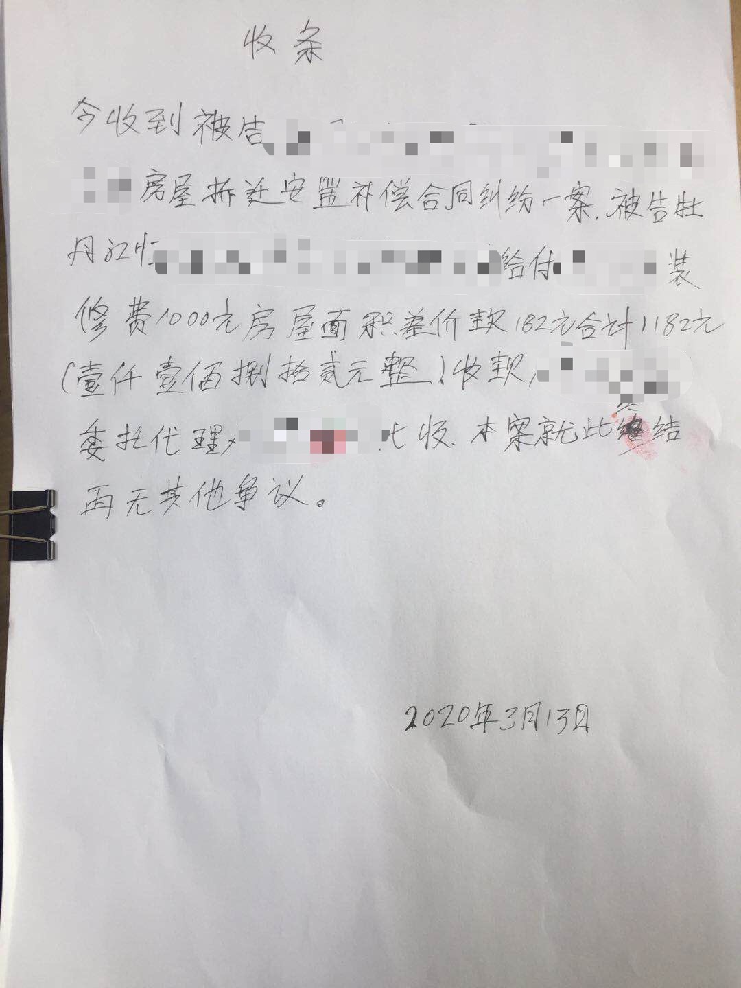 来电老人为案件原告,年近八旬,2010年5月其居住的40平方米平房拆迁,调换为产权54平方米的楼房,2014年3月老人回迁,建设单位承诺给予其1000元装修款,2019年原告办理房照时由于实际面积不够54平方米产生182元面积差价款,但建设单位未能如期支付以上款项,原告将建设单位诉至法院。