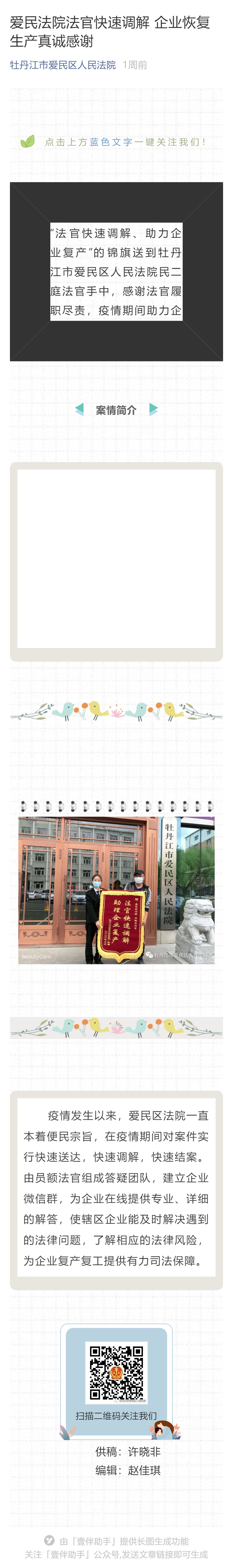 爱民法院法官快速调解 企业恢复生产真诚感谢
