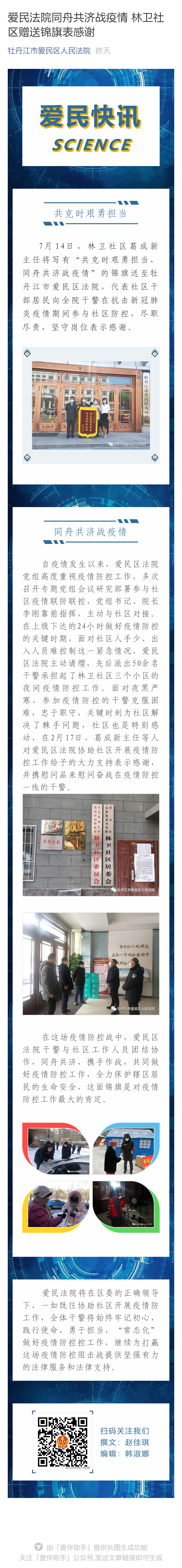 爱民法院同舟共济战疫情 林卫社区赠送锦旗表感谢