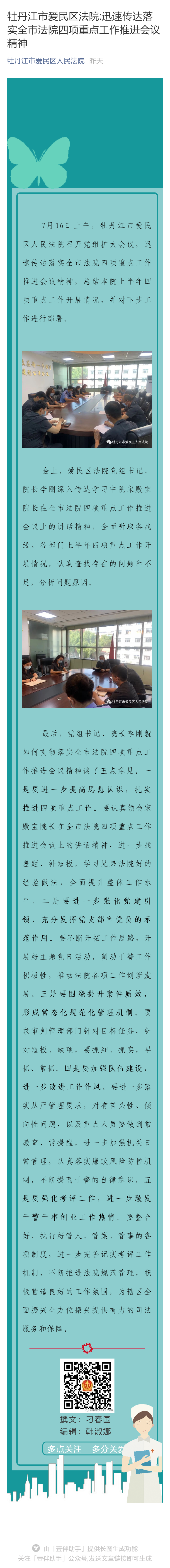 牡丹江市爱民区法院:迅速传达落实全市法院四项重点工作推进会议精神