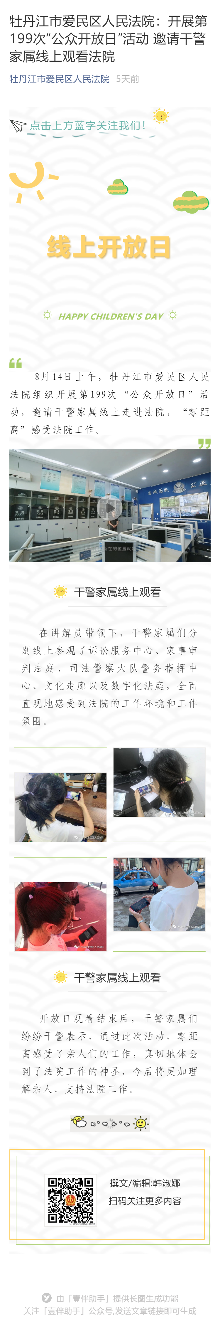 牡丹江市爱民区人民法院:开展第199次“公众开放日”活动 邀请干警家属线上观看法院