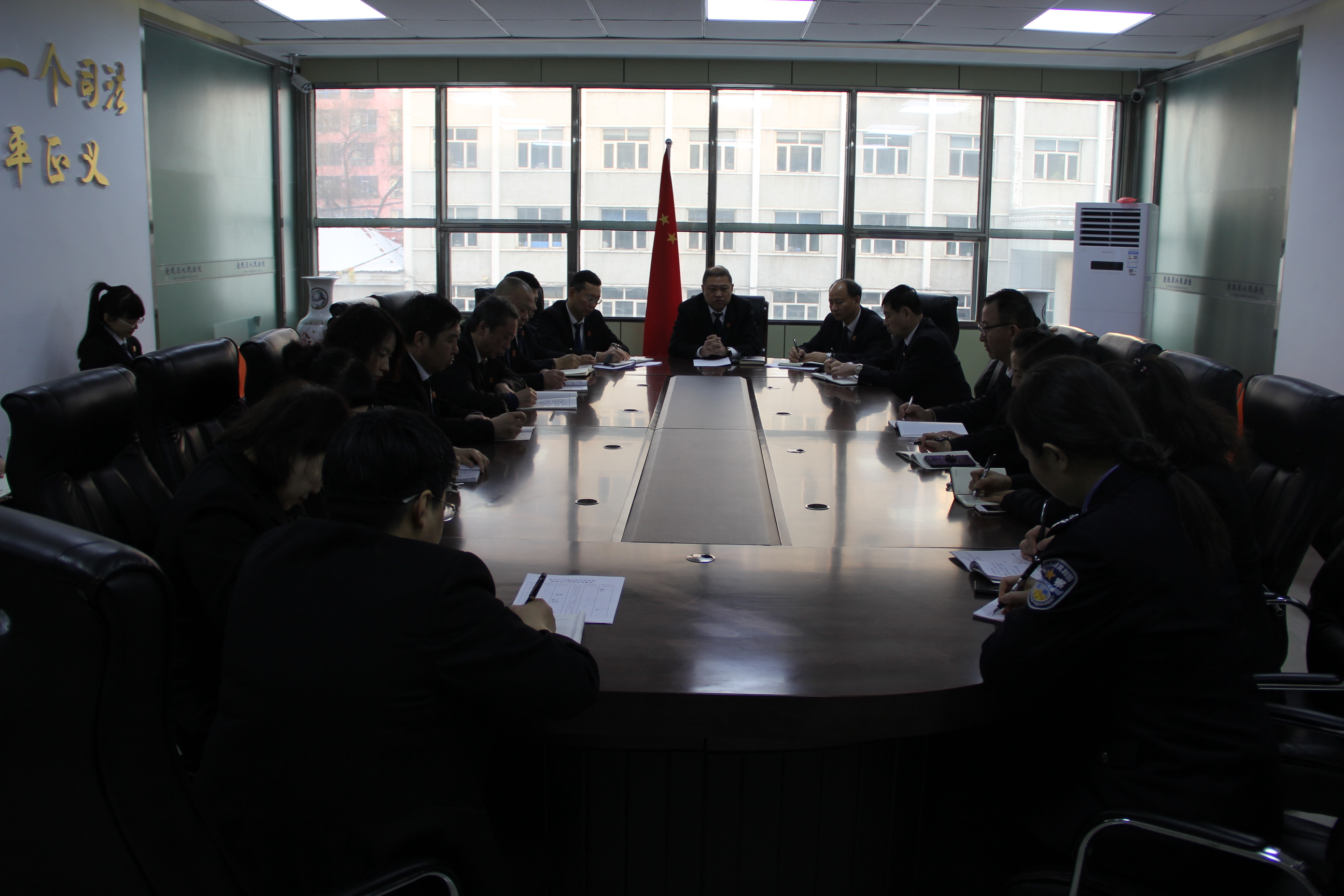 文明创建是牡丹江市爱民区人民法院长期坚持的一项基础性工作,2019年,牡丹江市爱民区法院在全院干警的努力下被省委省政府重新命名为“省级文明标兵单位”荣誉称号。为冲刺全国文明单位,12月27日,爱民区法院党组召开2020年争创全国文明单位工作安排部署会议。会议由党组书记、院长李刚主持,党组成员参加会议。