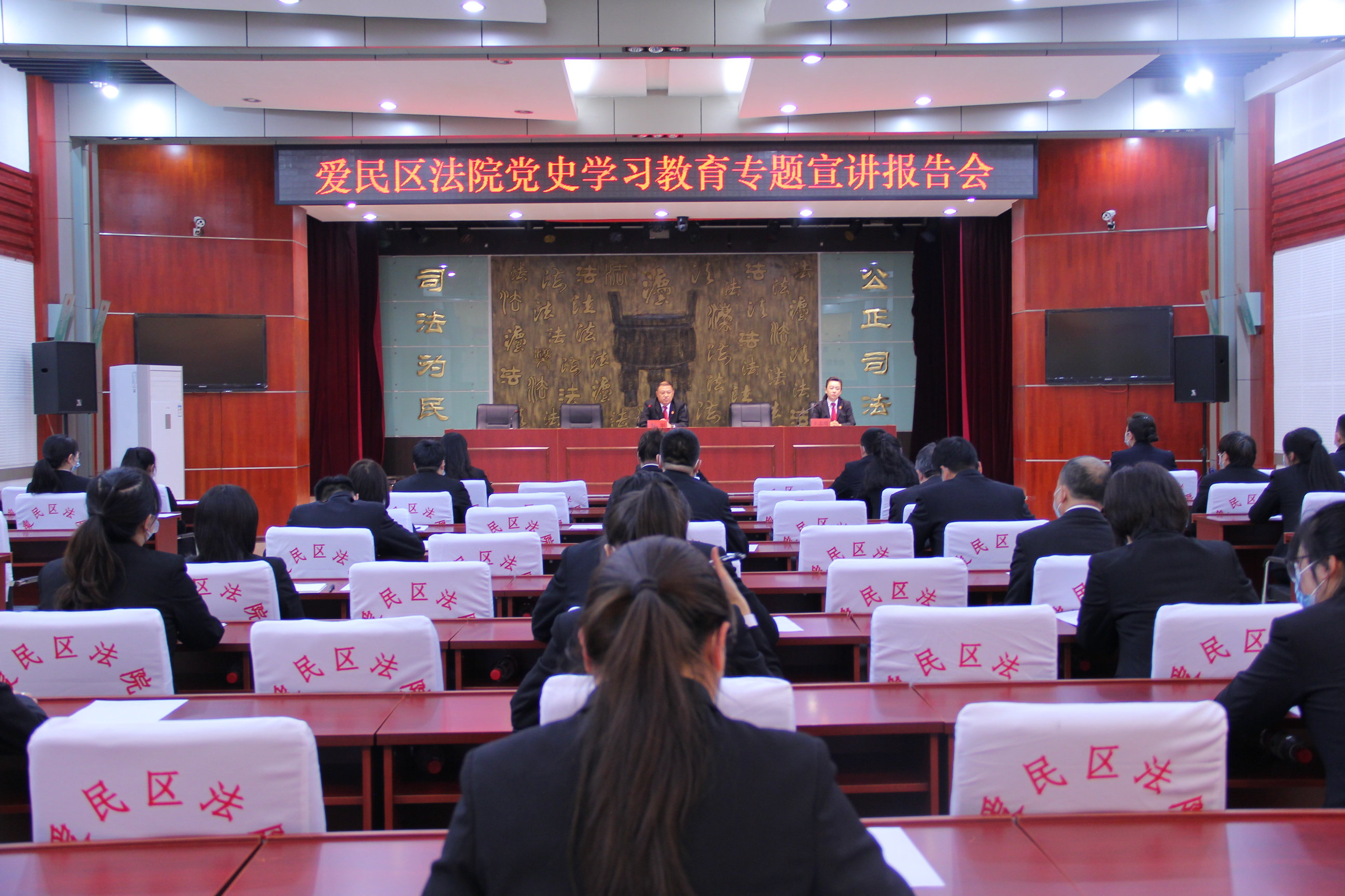 4月23日,牡丹江市爱民区人民法院召开党史学习教育宣讲会,党组书记、院长李刚为全院干警作专题宣讲。