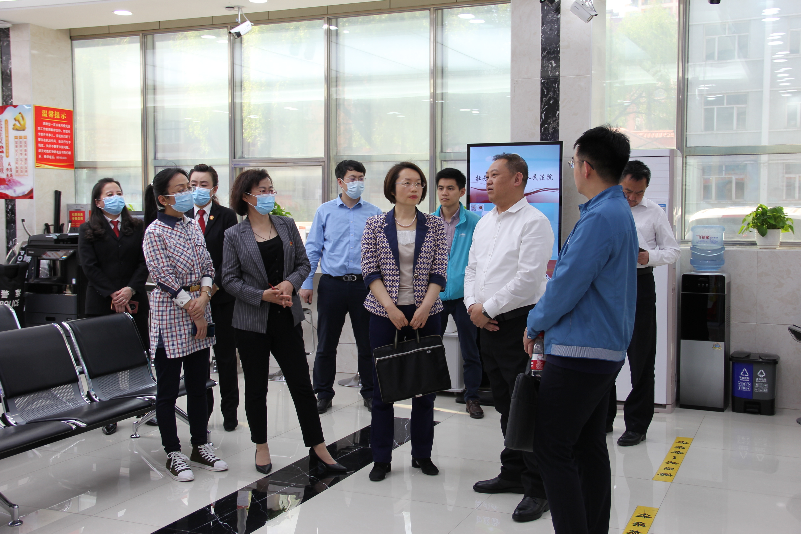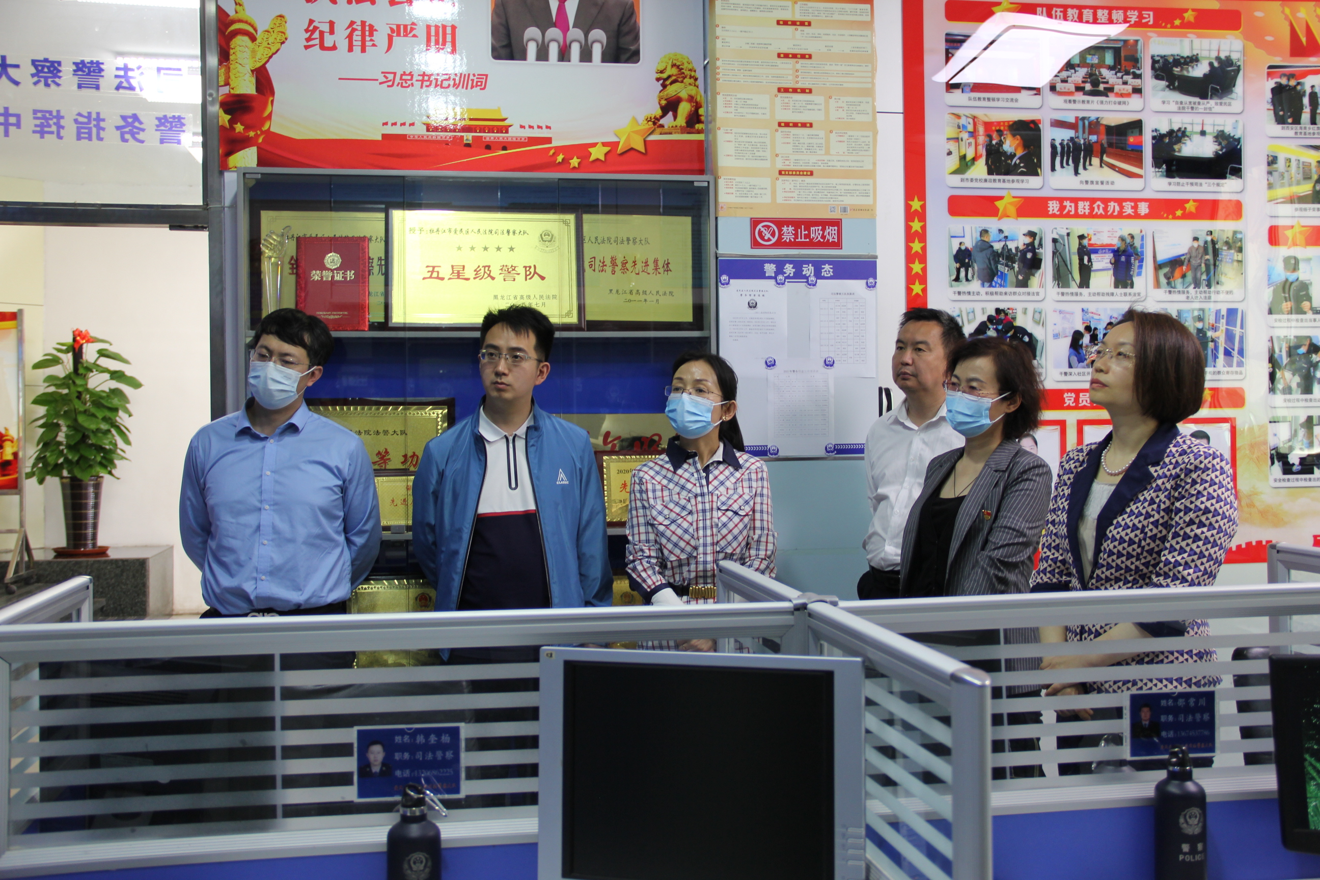 调研组成员先后深入诉讼服务中心、司法警察大队警务指挥中心、科技法庭,调研了爱民区法院信息化建设情况和一站式诉讼服务中心建设情况,详细询问法院监控中心运行管理、科技审判庭建设使用、网络运维等相关情况,多方面掌握法院信息化网络建设和网络安全管理工作。最后,调研组成员参加了本院第243次公众开放日活动,进一步加深对法院工作的了解。