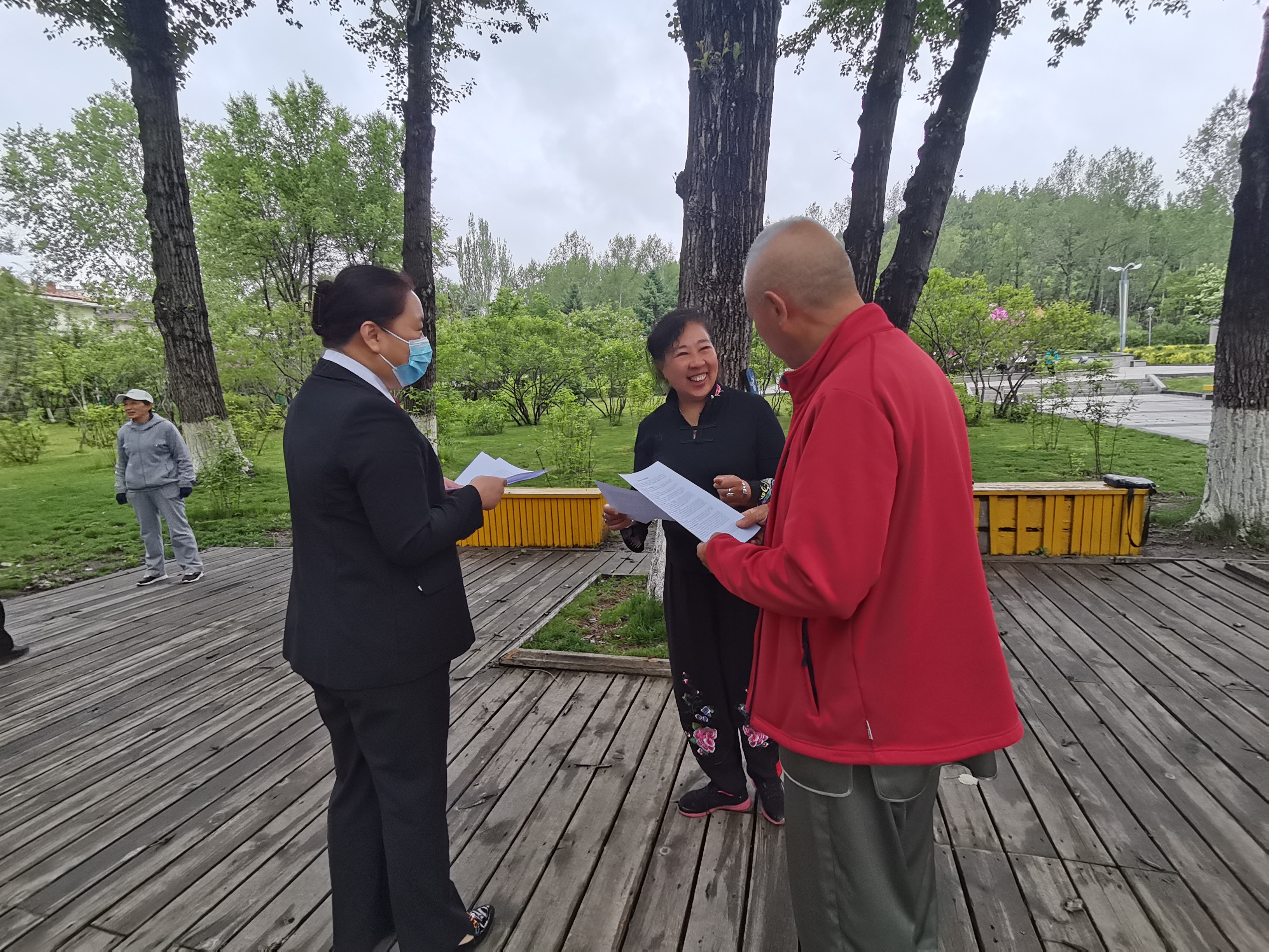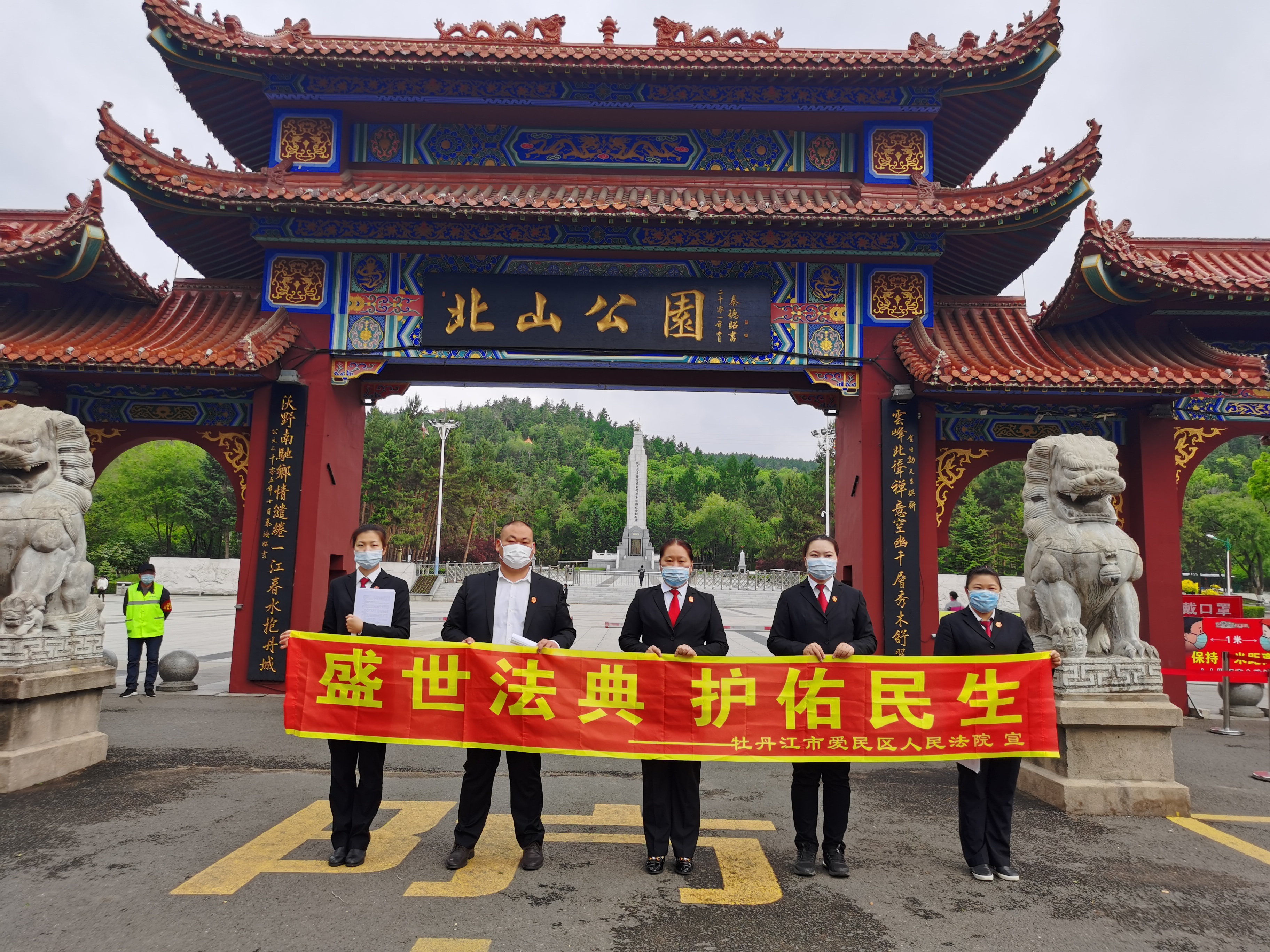 爱民区法院综合审判庭庭长张颖带领部门干警,利用周末休息时间,到爱民区北山公园开展“盛世法典 护佑民生”普法宣传活动。活动现场,干警们通过提供法律咨询服务、发放《民法典》宣传单等形式开展普法宣传,针对群众关心的婚姻关系、邻里关系中的纠纷涉法问题进行耐心、热情的回答,用通俗易懂的法言法语介绍《民法典》与日常生活息息相关的法律知识。