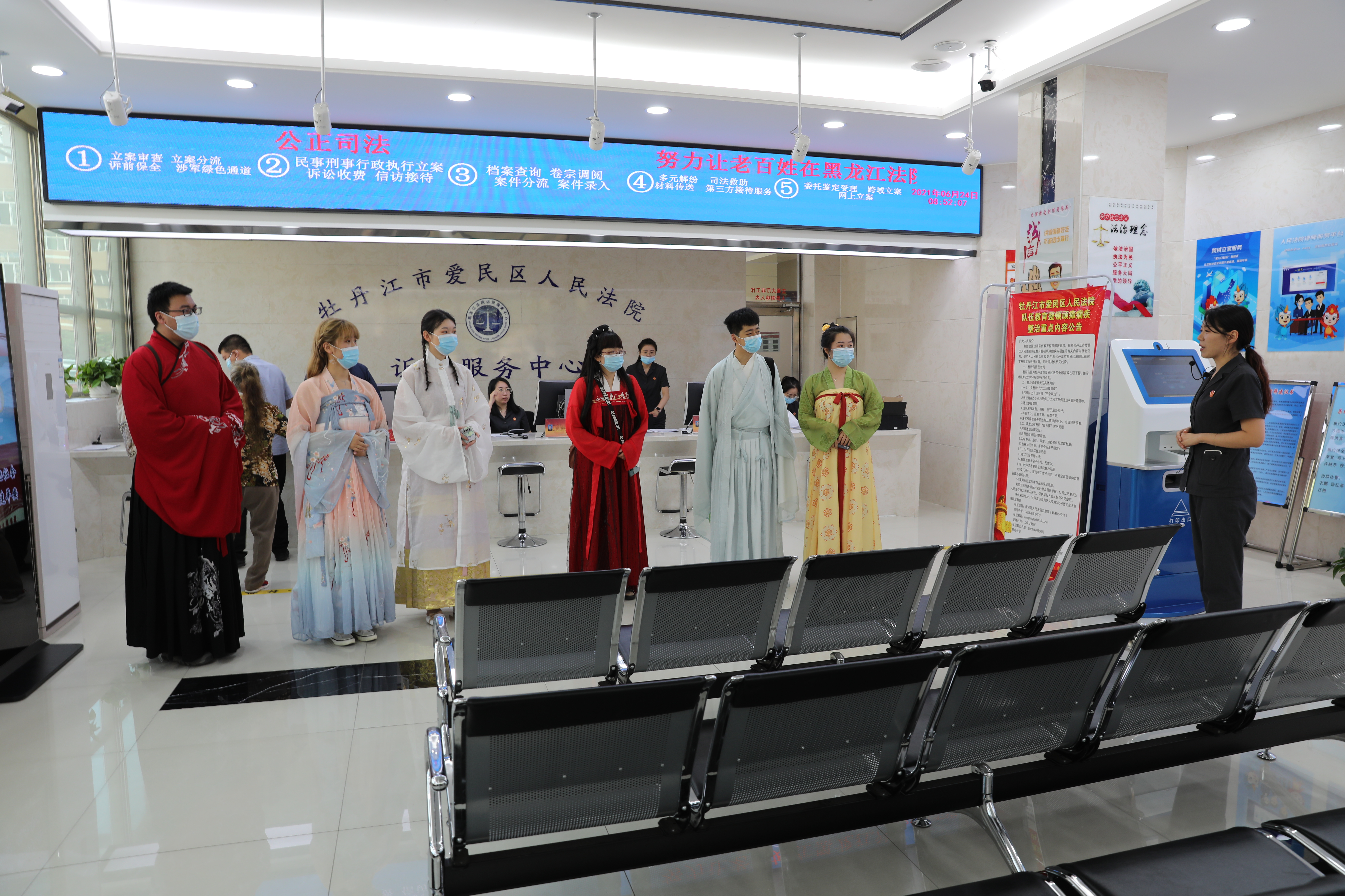 为增进社会团体组织对人民法院工作的了解,持续推进司法公开,6月24日,牡丹江市爱民区法院邀请牡丹江青袊汉服社6名社员走进法院,参加第247次公众开放日活动。