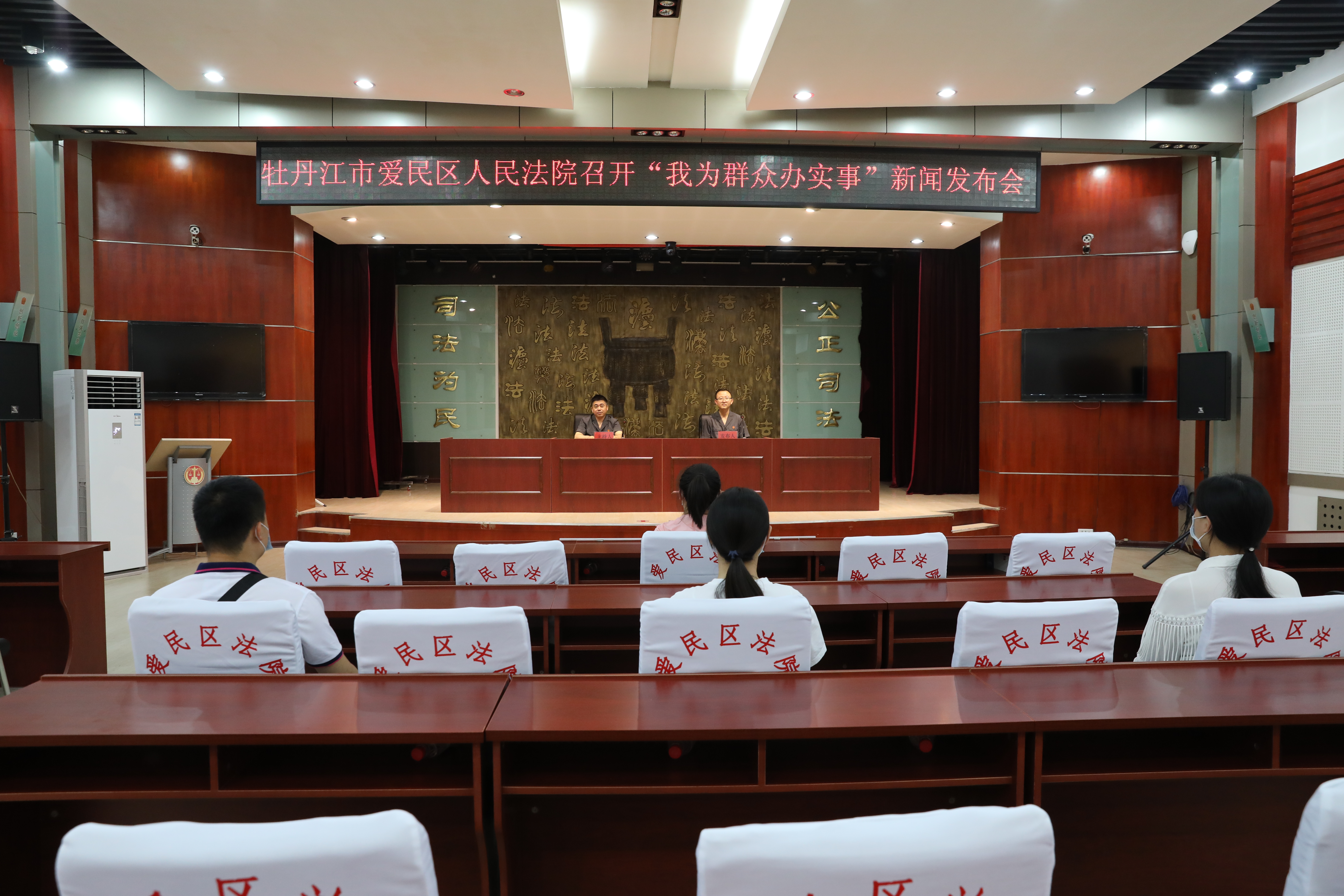 6月28日,牡丹江市爱民区人民法院召开队伍教育整顿“我为群众办实事”新闻发布会。爱民区法院党组成员、政治部主任刁春国主持发布会,研究室主任时维发布“我为群众办实事”工作开展情况,牡丹江日报等媒体受邀参加发布会。
