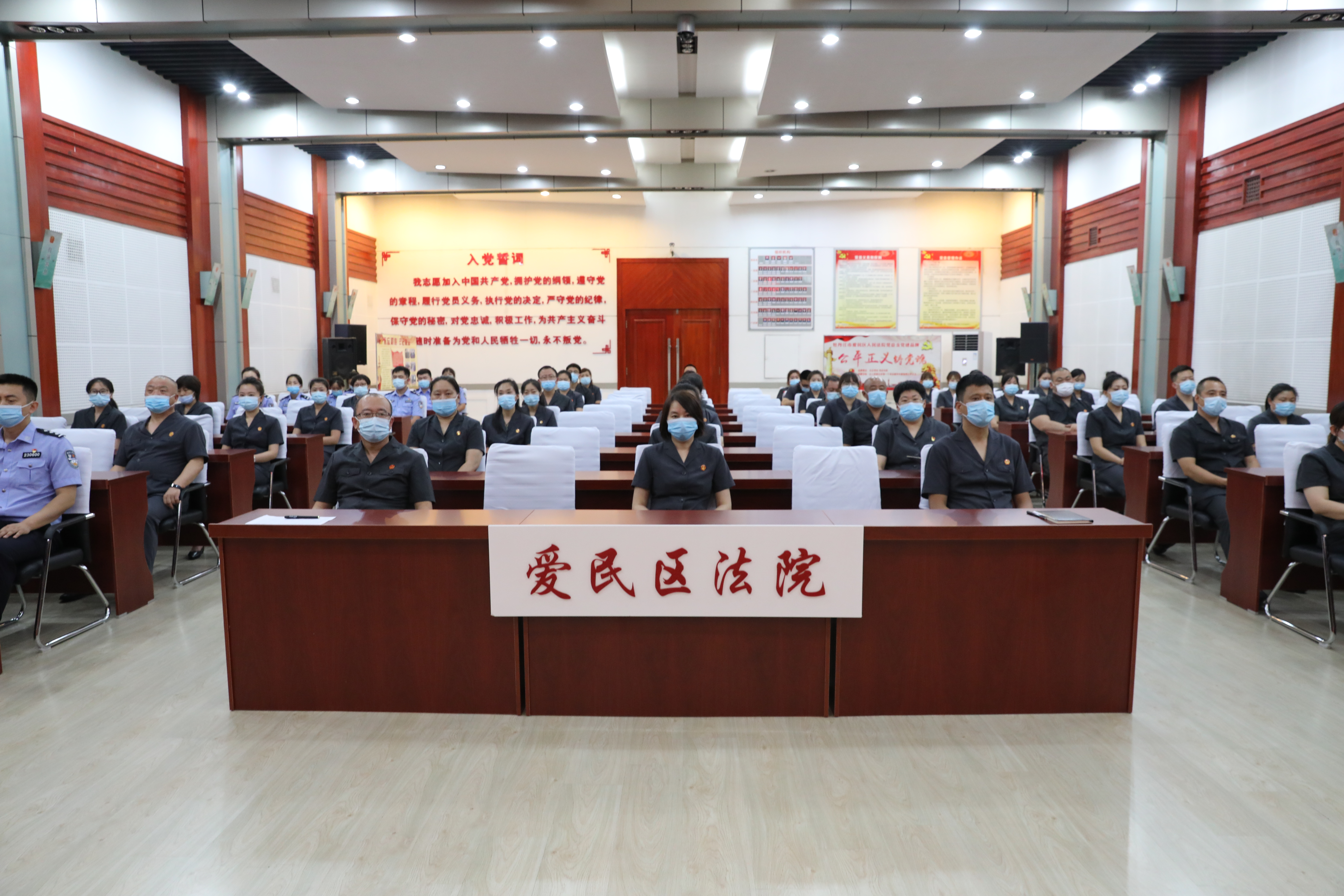 6月28日, 牡丹江市爱民区人民法院召开队伍教育整顿总结大会,总结全院队伍教育整顿工作,表彰一批队伍先进典型,进一步巩固扩展教育整顿成果。会议由党组成员、政治部主任刁春国同志主持,全院干警参加会议。
