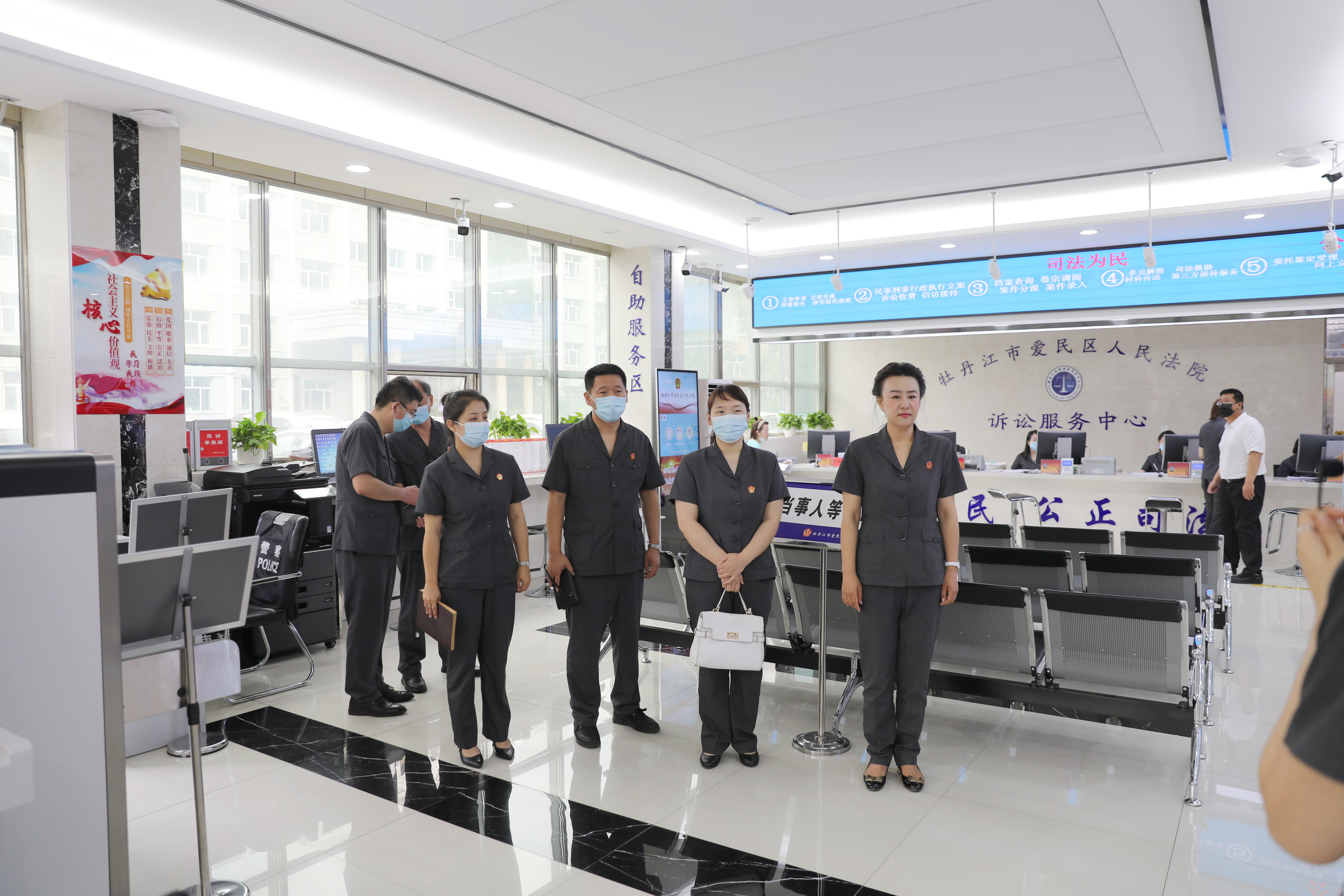在讲解员的引导下,先后参观了诉讼服务中心、司法警察大队警务指挥中心、家事审判法庭、科技法庭以及文化长廊等场所,认真听取工作人员讲解,全方面了解爱民法院审判管理等方面的工作情况。