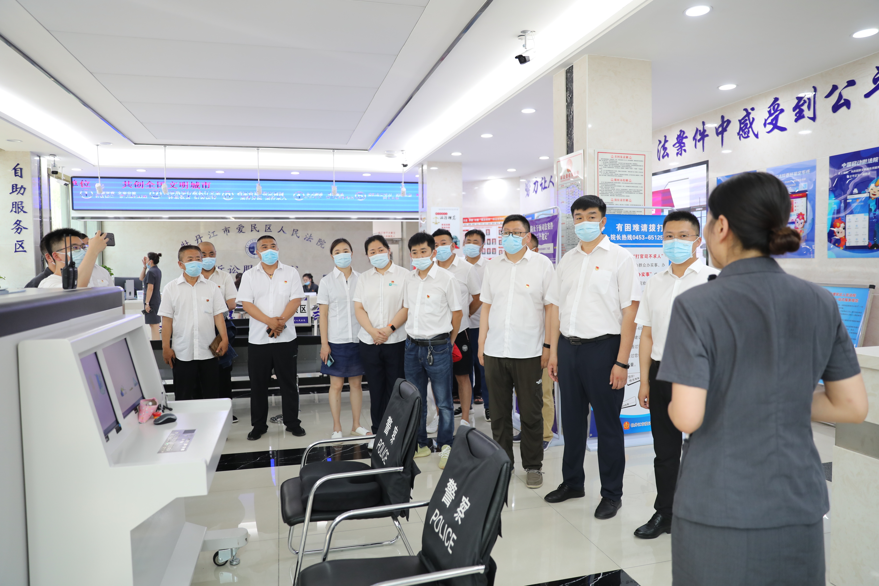 为进一步推进司法公开,提高司法透明度,增进社会各界对法院工作的了解。牡丹江市爱民区人民法院举办第257次“公众开放日”活动,邀请牡丹江市爱民区供电公司职工走进法院,在总经理王翔宇、党支部书记付绍强、副总经理朱利刚带领下,一行17人零距离感受法院工作。爱民区法院党组成员、政治部主任刁春国陪同参观。