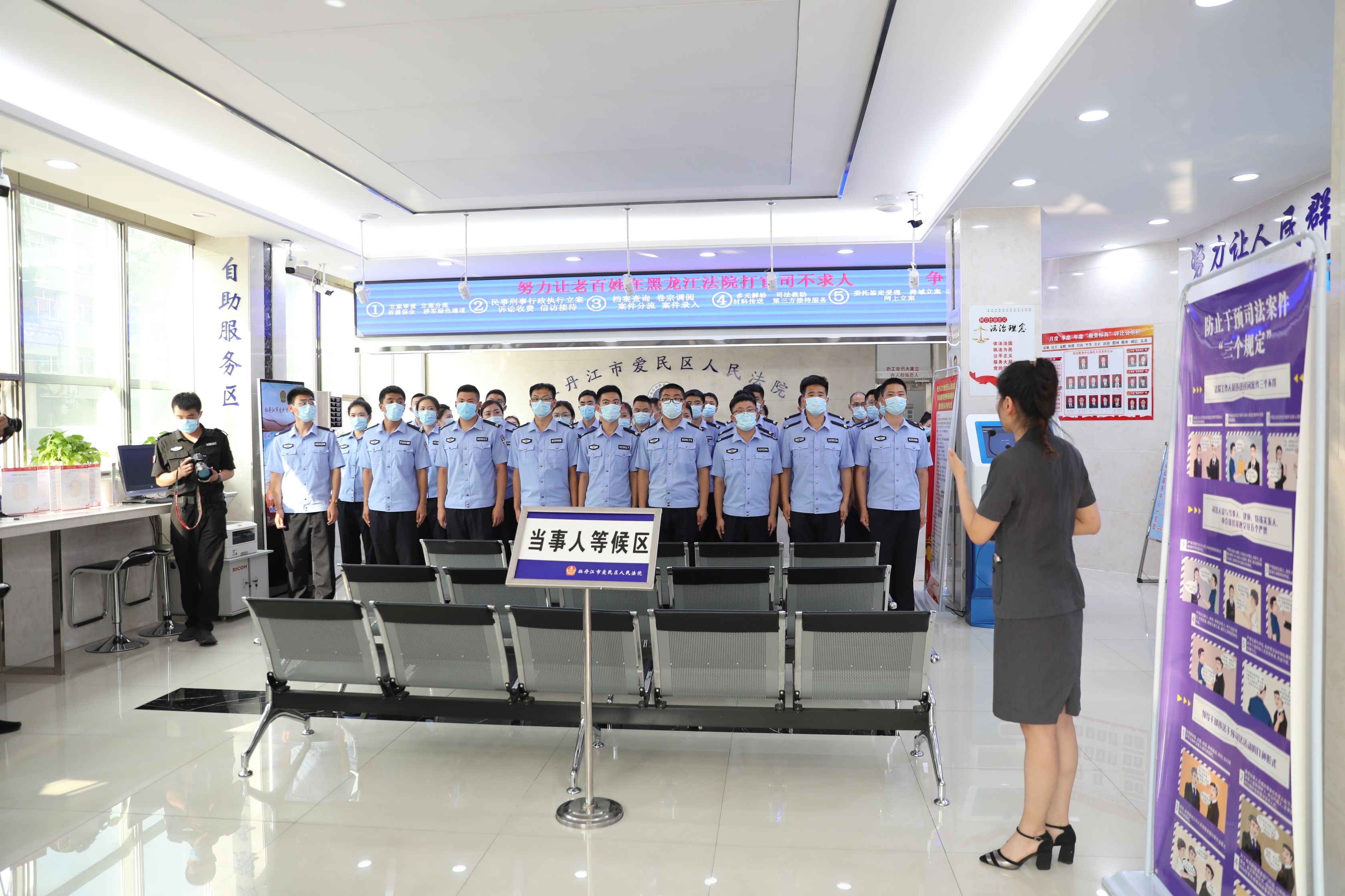 7月26日,牡丹江市爱民区人民法院开展第258次“公众开放日”活动,邀请铁路公安局新录用干警及培训教官43人走进法院,感受“阳光司法”。