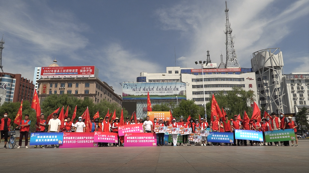 志愿者们身着红色上衣,手举红色宣传旗帜、宣传展板、吉祥物,从南湖公园到文化广场沿线进行徒步宣传,顶着炎炎烈日,爱民区法院干警依旧以饱满的热情、认真的态度投入到旅发大会的宣传活动中,展现了朝气蓬勃的精神面貌,营造了浓厚的宣传氛围。