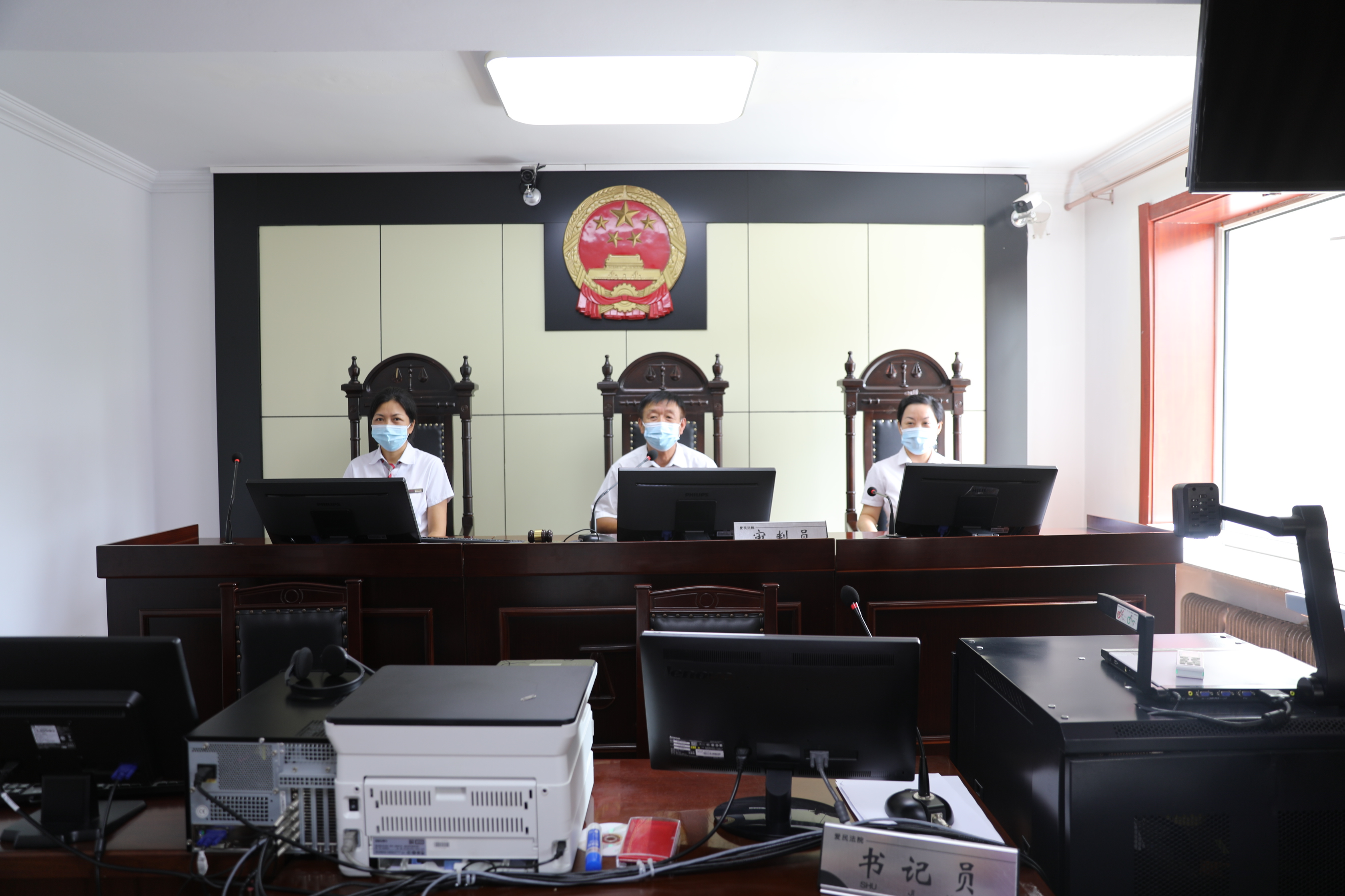 在讲解员的引导下,大家先后参观了法院的诉讼服务中心、司法警察大队警务指挥中心、文化走廊以及审判法庭等地,详细介绍了法院的诉讼服务以及文化建设,在审判法庭员工们走上审判席,拿起法槌,切身体会法律威严。