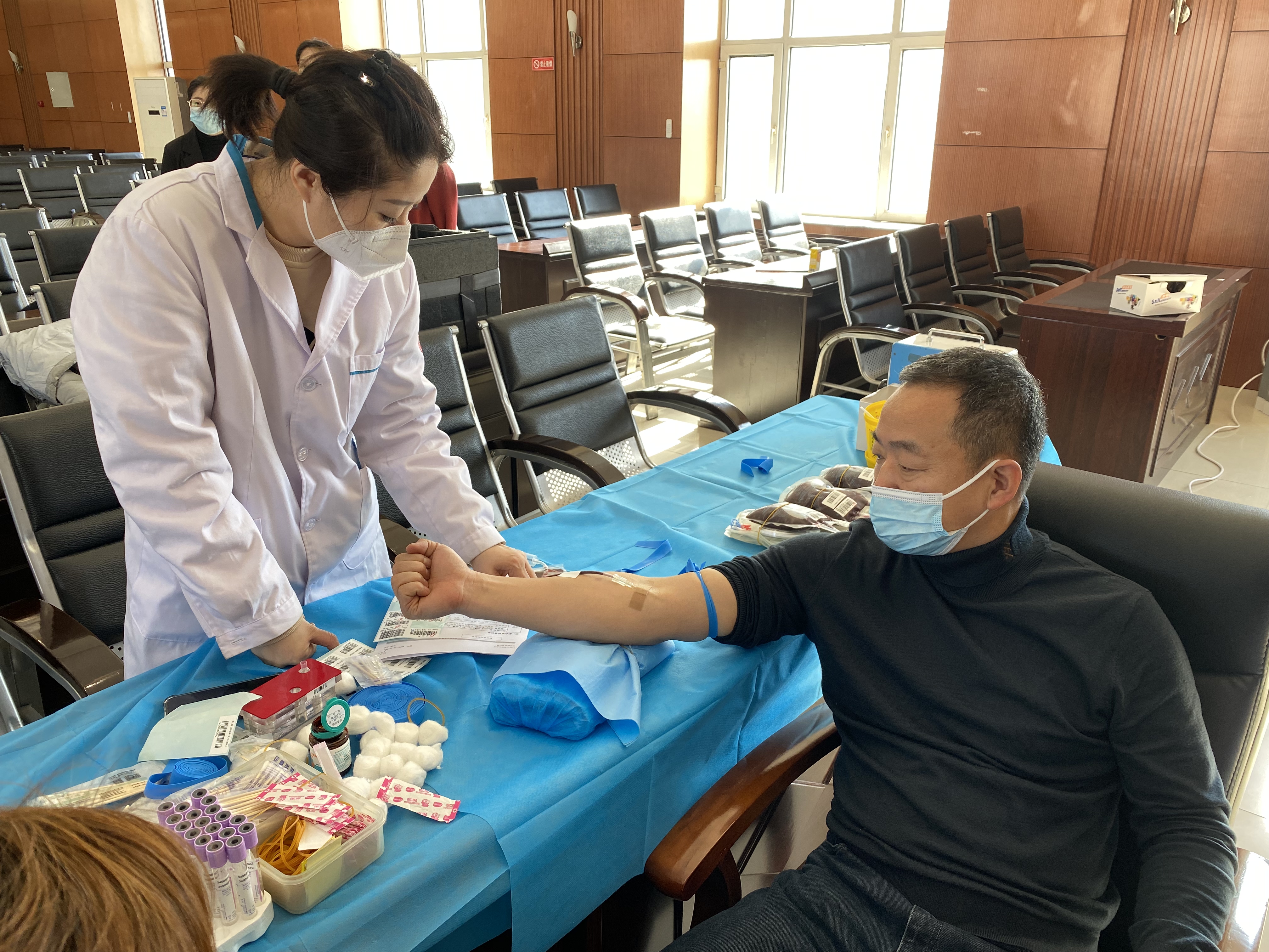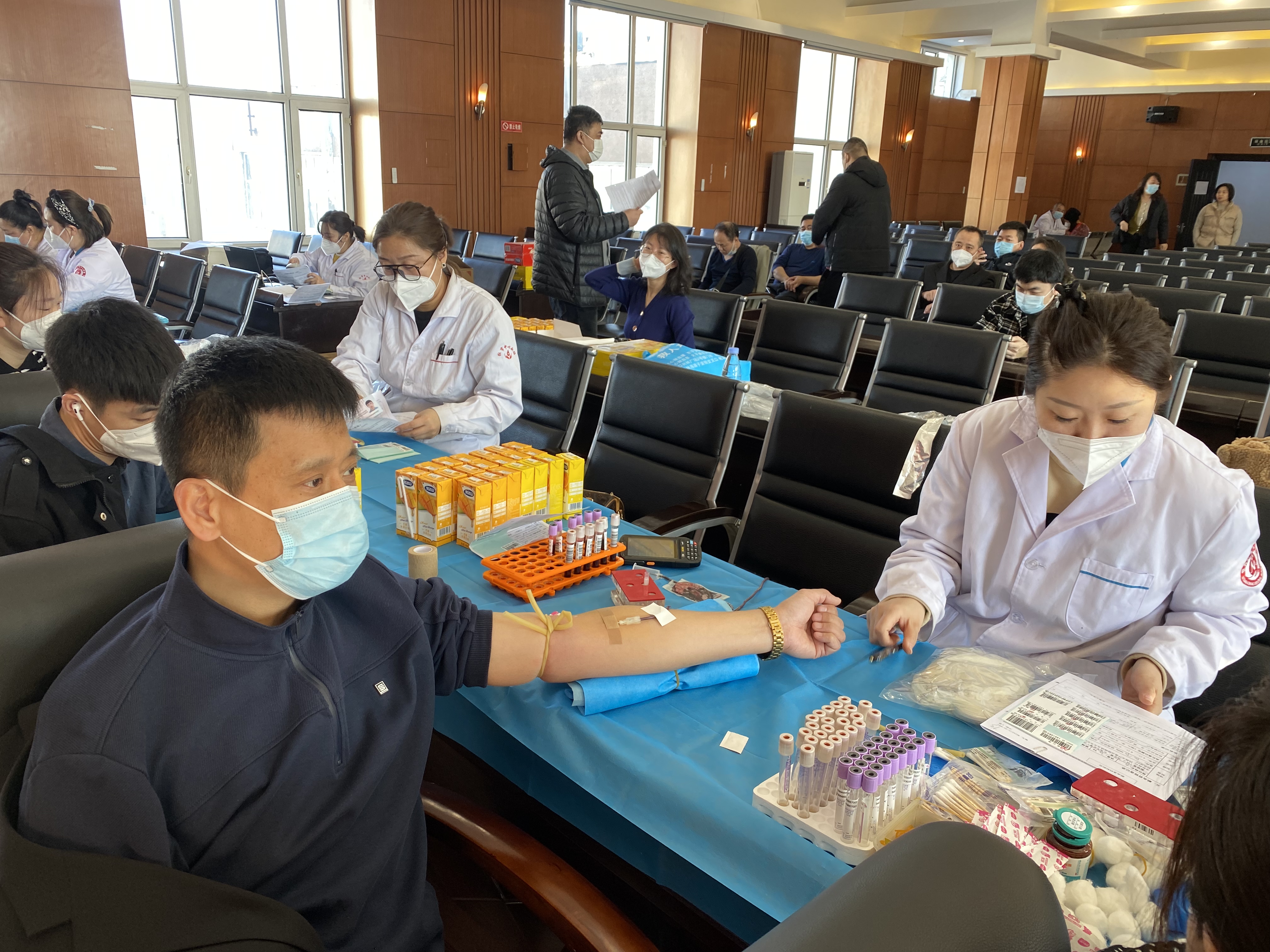 献血现场,党员干警们严格遵守献血程序,认真填写《无偿献血登记表》,仔细聆听医生讲解献血过程中应注意的事项,积极配合医务人员进行体检、化验、采血,整个现场秩序井然,党员干警们献血热情高涨,纷纷挽起手臂,滴滴热血为社会添加了一份力量和温度。